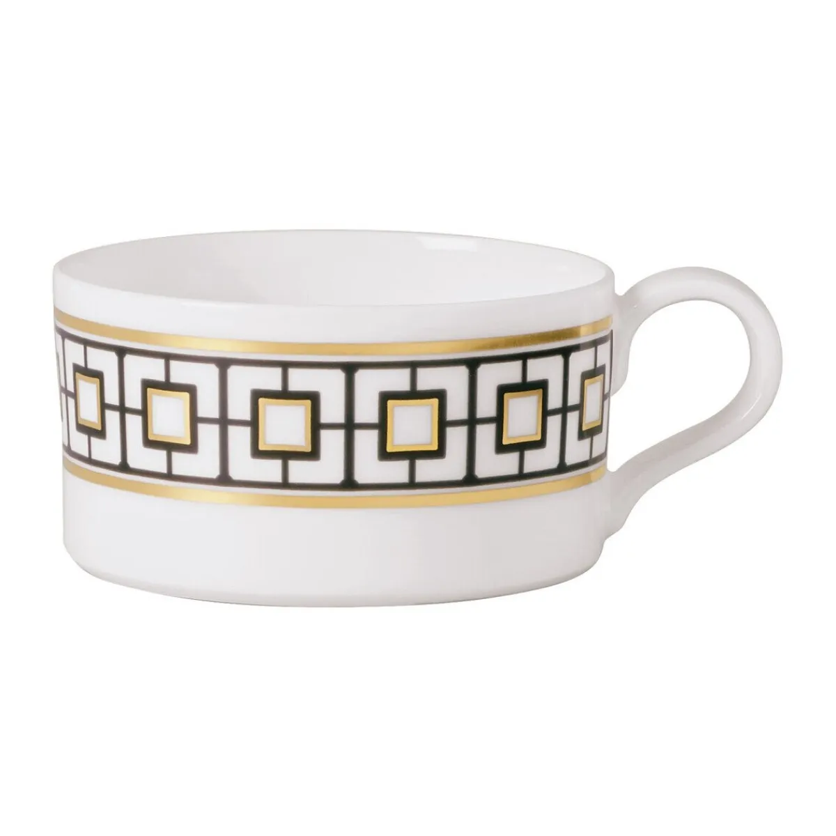 Die Teetasse MetroChic von ist von einer anmutigen Präsenz geprägt, die durch das geometrisch strukturierte Dekor zustande kommt. Mit ihren goldenen Facetten bringt sie einen brillierenden Glanz auf die Nachmittagstafel und wertet diese mit einer exquisiten Aura auf. Schaffen Sie mit dieser Tasse ein Tischbild, das von klarer Eleganz durchdrungen ist.