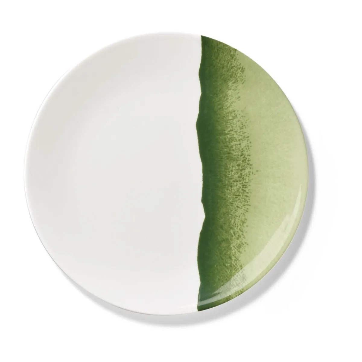 Der Speiseteller Pure Silhouette Khaki von trumpft mit einem ansprechenden Kontrast und einem grünlichen Farbverlauf auf. Das dunkle Grün wird zum Rand hin heller und verbindet sich dort wieder mit dem klaren Weiß, das den Rest des Tellers prägt.