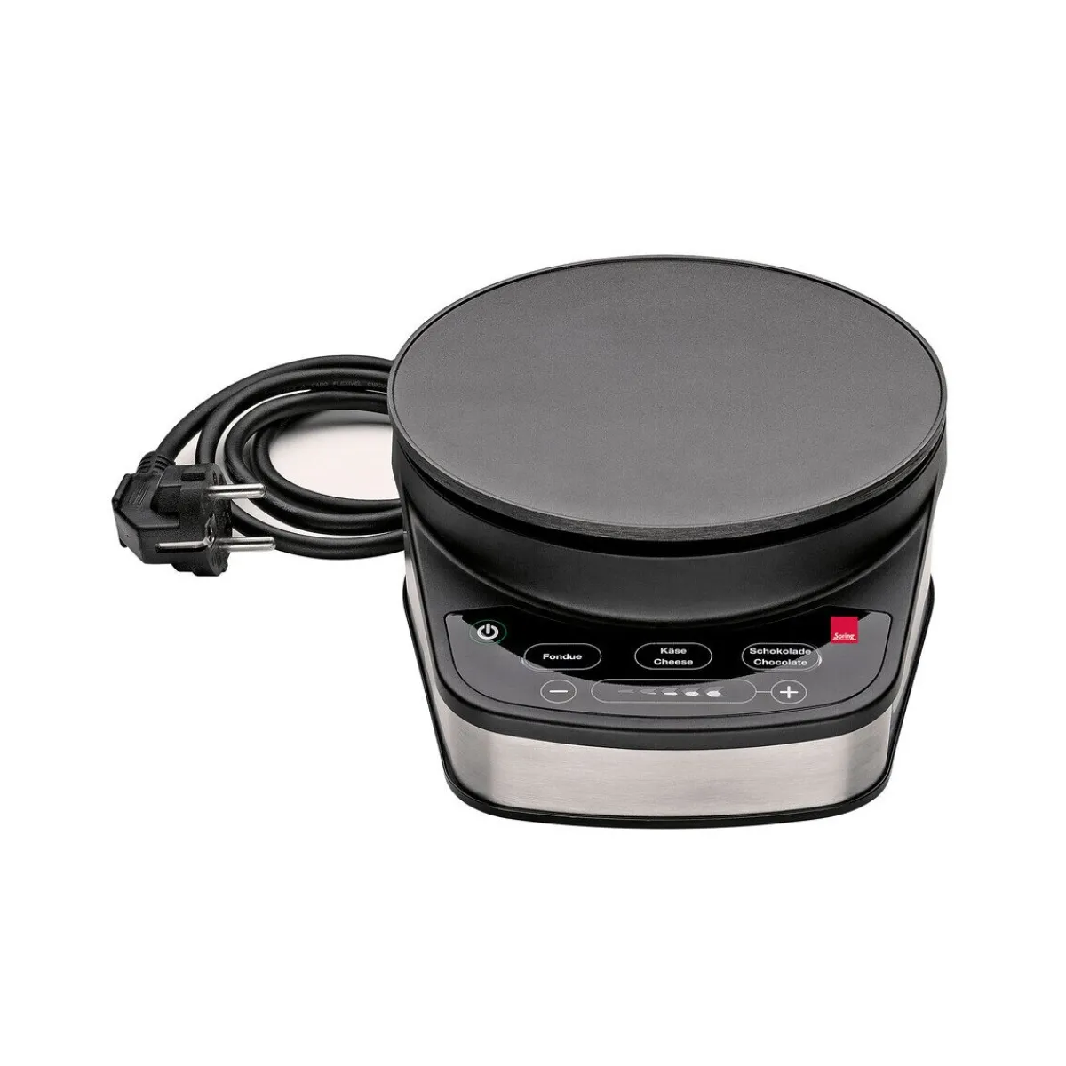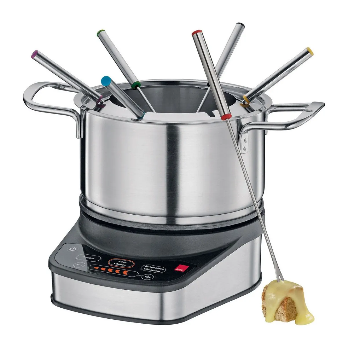 - ein elektrisches Rechaud mit voreingestellten Temperaturstufen (für Fett, Brühe, Käse oder Schokolade)