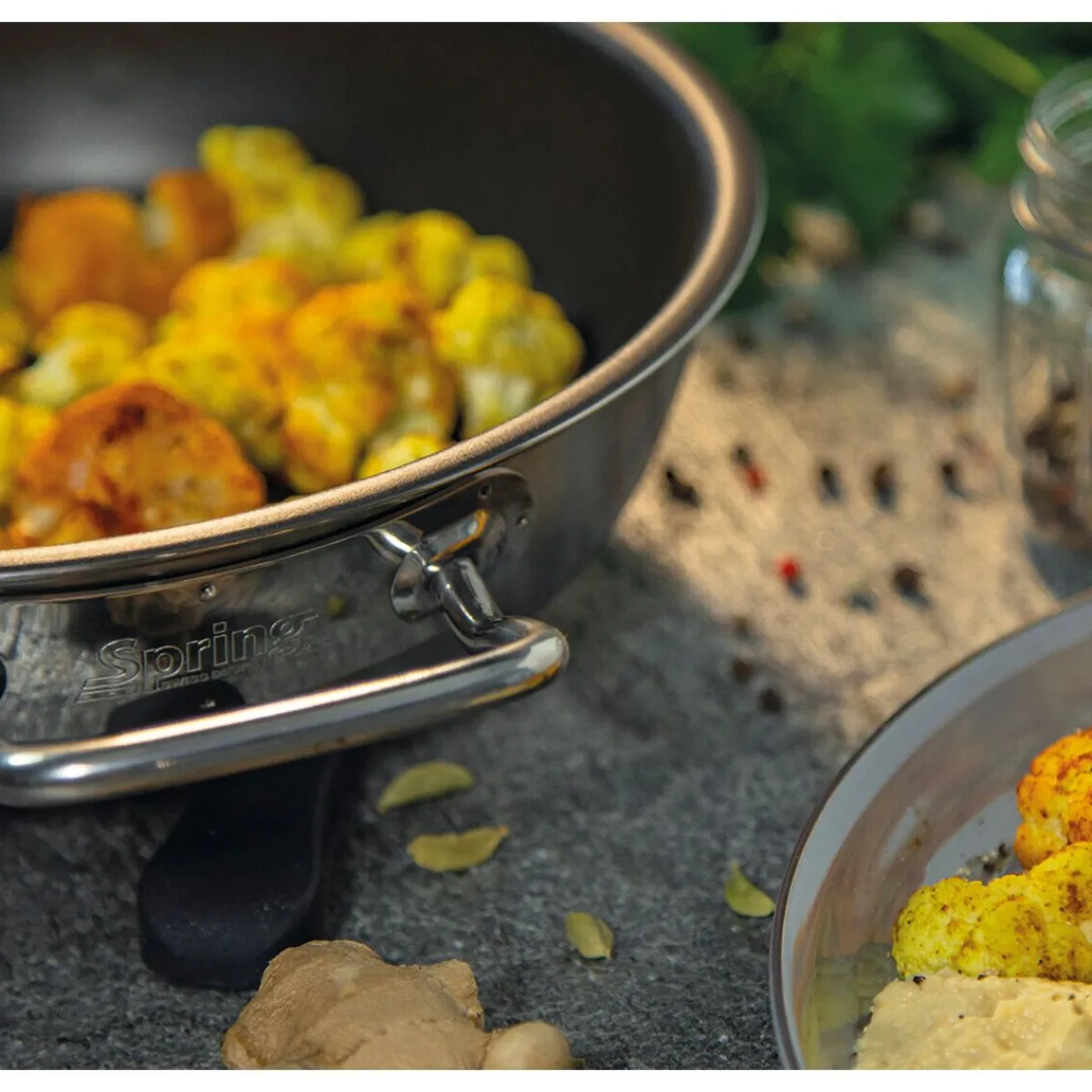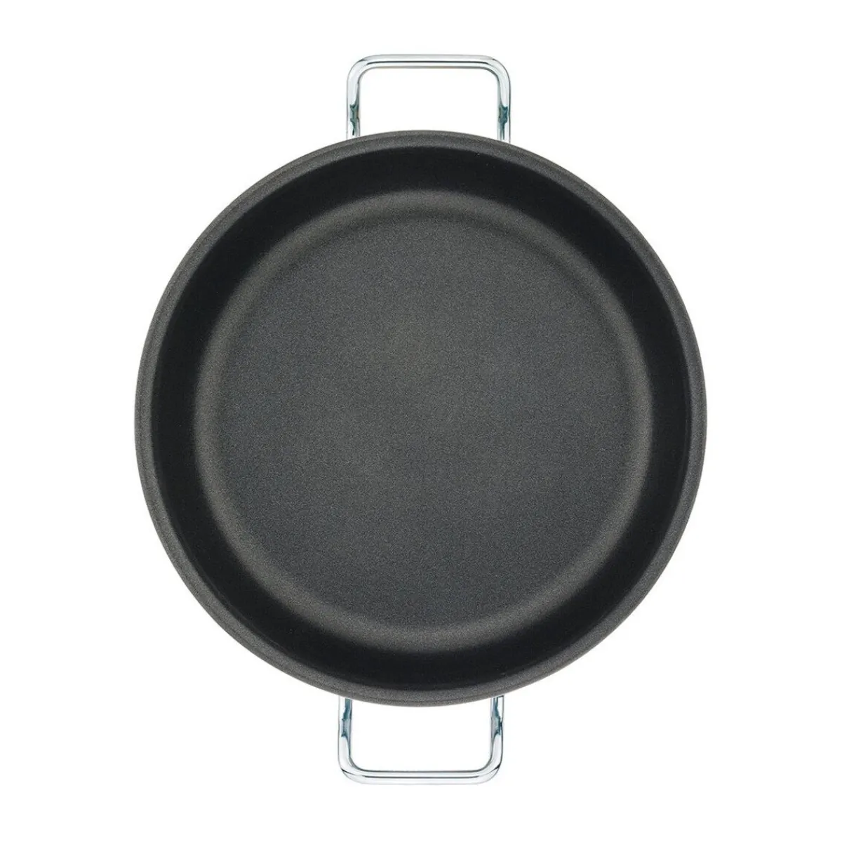 Die große Servierpfanne der Serie Vulcano Classic von macht Kochen zu einem neuen Erlebnis. Auf der mineralischen Antihaftbeschichtung lassen sich die Speisen problemlos zubereiten.