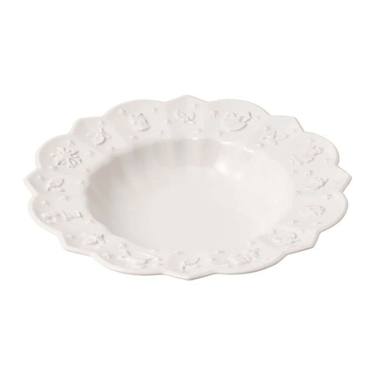 Toy’s Delight Royal Classic verzaubert mit formschönen Accessoires und einer klassisch reinweißen Geschirrserie mit hochwertigem Porzellan-Relief. Die Kollektion passt wunderbar zu den Stücken von Toy’s Delight mit ihren weihnachtlichen Farben. Seit 1748 steht Villeroy & Boch für Porzellan allerhöchster Qualität.Suppen und Eintöpfe sind zur Weihnachtszeit herrlich wärmend – in diesem formschönen Teller servieren Sie beides äußerst stimmungsvoll. Premium Porcelain. Spülmaschinenfest, mikrowellensicher.Feiern Sie Weihnachten mit schönen Stücken im klassisch reduzierten Stil von Villeroy & Boch.