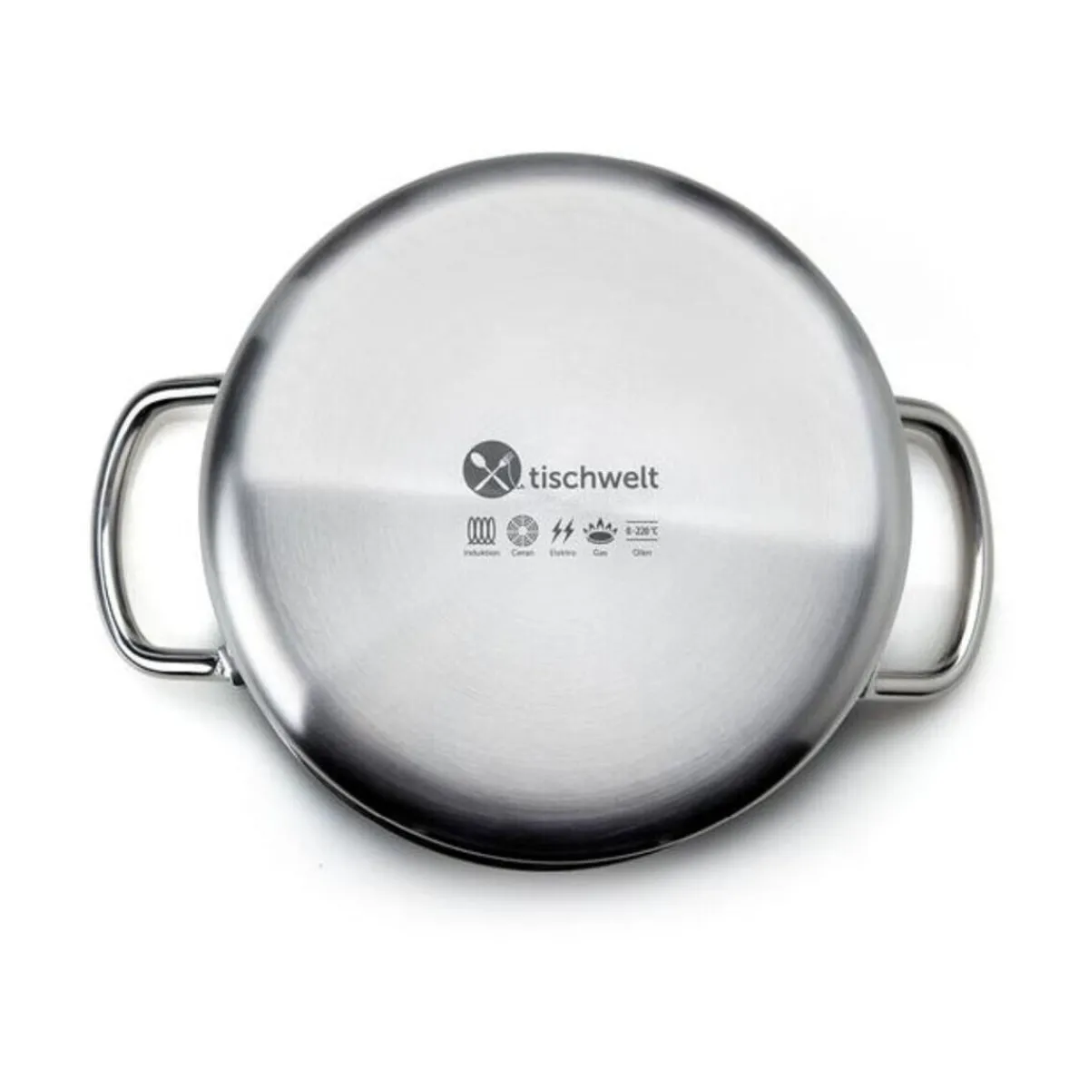 - gefertigt aus zwei Schichten induktivem Edelstahl, die sich um einen dreifachen Aluminiumkern legen