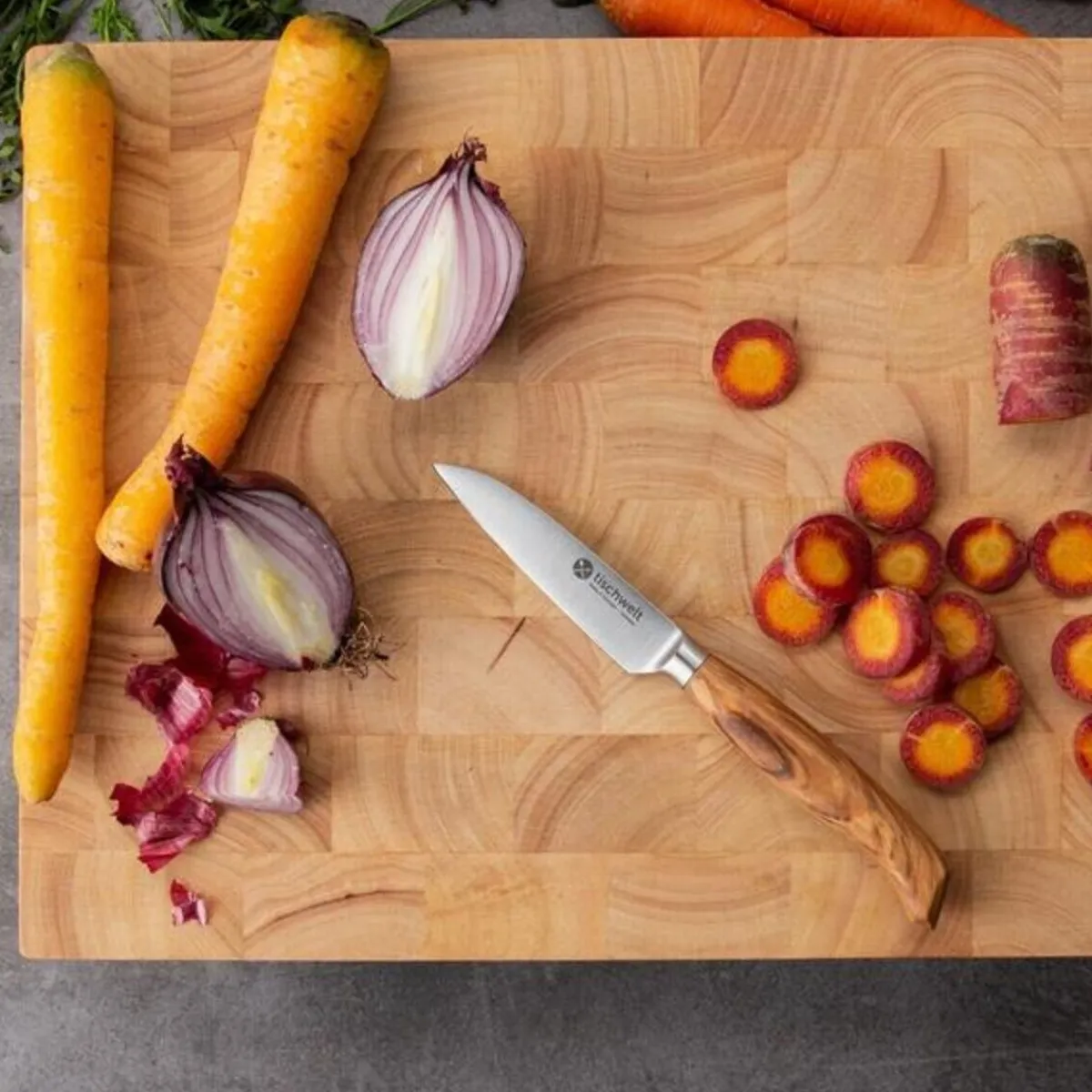 - ein Gemüsemesser (9 cm) für Feinarbeiten und präzise Schnitte