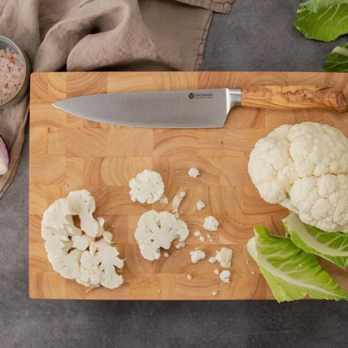 Das Messer-Set aus der Serie Nature von liegt mit seinen handschmeichelnden Griffen sicher und wohltuend in den Händen. Die einzigartige Maserung des warmen Olivenholzes begeistert als kleiner Blickfänger im Küchenalltag und trägt zu einer komfortablen Nutzung bei. Die scharfen Schneiden und die ausgewogene Balance der Messer runden die Konzeption hervorragend ab.