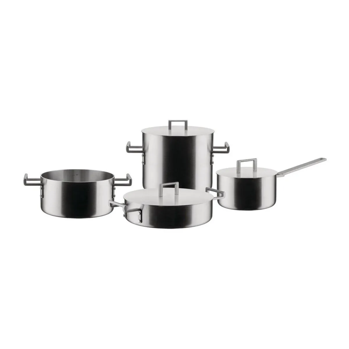 Mit dem Topf-Set Convivio von werden Menschen beim Kochen und Genießen zusammengebracht. Die Töpfe sind auf große Mengen ausgelegt und eignen sich somit zur Zubereitung von Gerichten für Verwandtschaftstreffen oder Geburtstage. Das mattierte Oberflächendesign und die geradlinige Ausführung stehen für Zeitlosigkeit und Reinheit. Ein vollmundiger Geschmack Ihrer Speisen ist Ihnen hiermit garantiert.