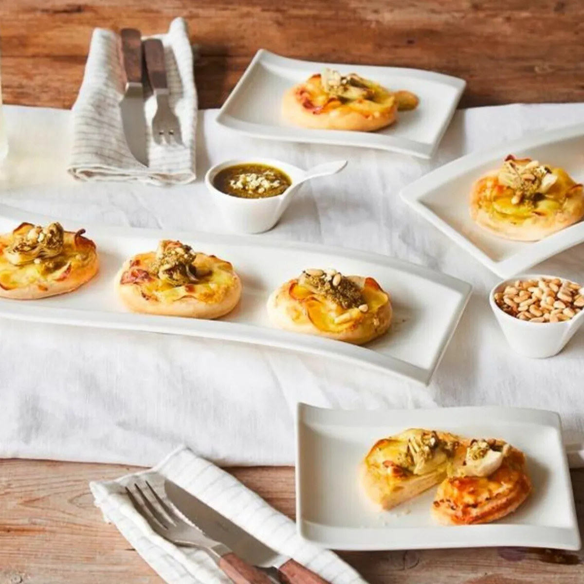 Mit dem Brotteller NewWave von runden Sie Ihr Gedeck hervorragend ab. Auf ihm lassen sich Brot und Baguettescheiben als Beigabe zu Vorspeise oder Hauptgericht hübsch drapieren und kredenzen. Genießen Sie mit der geschwungenen Anmut der Wellen.