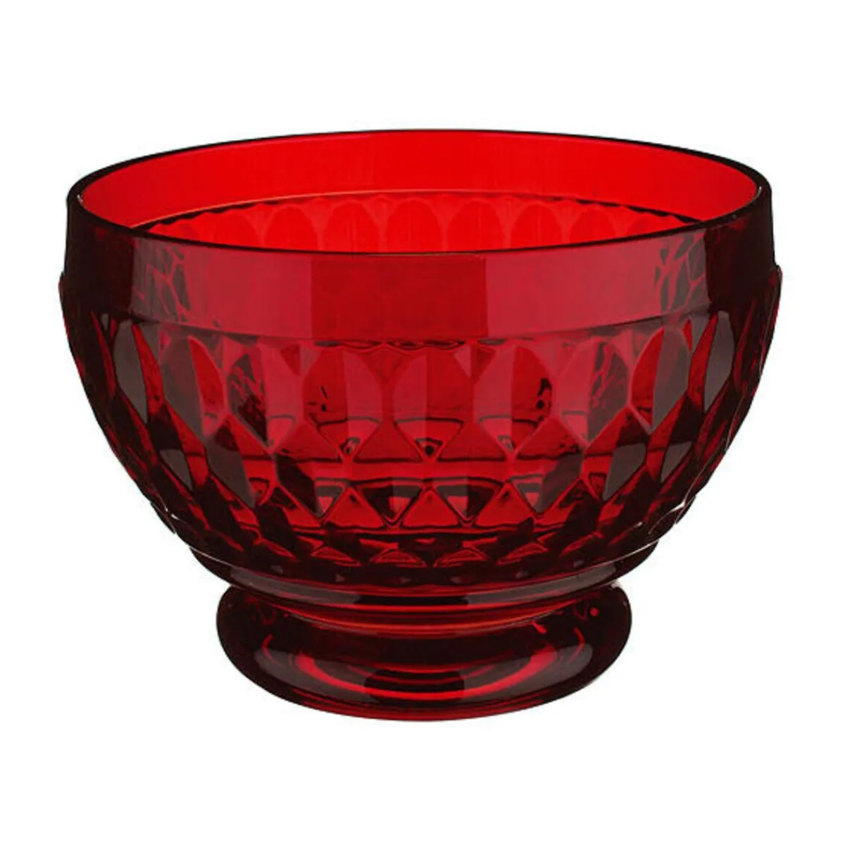 Der verspielte Schliff der brillanten Kristallglas-Kollektion Boston Coloured von macht sie zu einem wahren Blickfang auf dem gedeckten Tisch. Die vielseitige Prismendekoration und intensiven Farbtöne wie dieses Rot verleiht selbst simpelsten Desserts oder einer Kugel Eis eine ganz besondere Note.