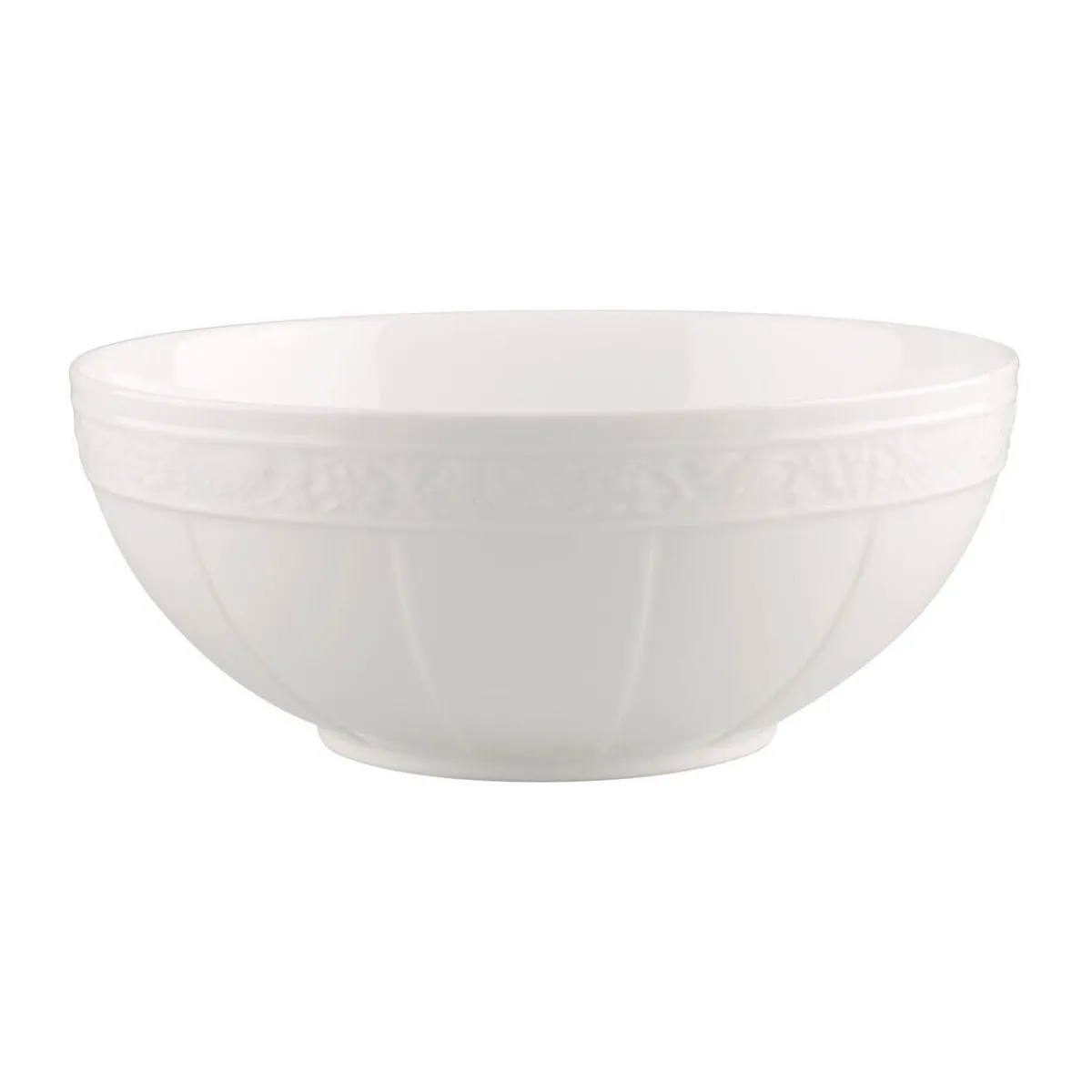 Mit der Schüssel White Pearl von bringen Sie hauchzartes Premium Bone Porcelain auf die Tafel. Wie eine schneeweiße Perle kommt die Schale daher und inszeniert Ihre Salate, dampfende Pasta oder Ihr frisches Obst mit verführerischer Eleganz und einer hohen Kontraststärke. Die filigranen Relieffacetten runden das Geschirrstück mit einer effektvollen Haptik sowie einem exklusiven Hauch ab. Bringen Sie mit dieser Servierschüssel eine anmutige Präsenz auf Ihren Tisch.