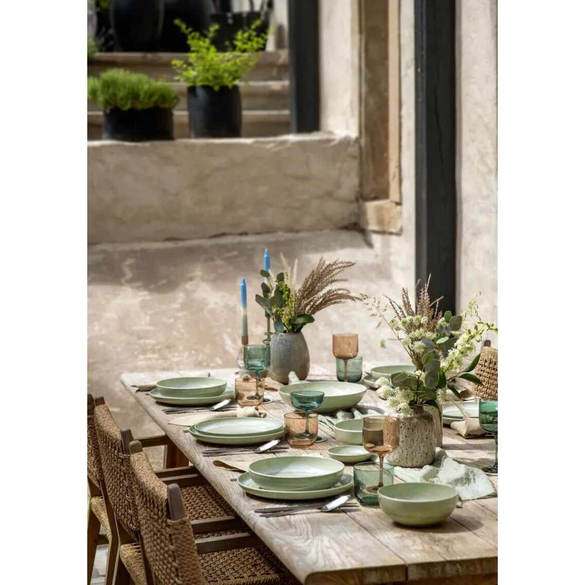 Der Speiseteller Perlemor Alga von kommt mit einem unbeschwerten Charme daher. Die sommerlich leichte Frische, die er repräsentiert, entsteht durch seinen einzigartigen Look. In ihm treffen Sprenkel und Tupfer auf fließende Übergänge und ein dezentes Basisgrün. Servieren Sie Ihr Hauptgericht mit diesem Teller im Pottery-Stil.