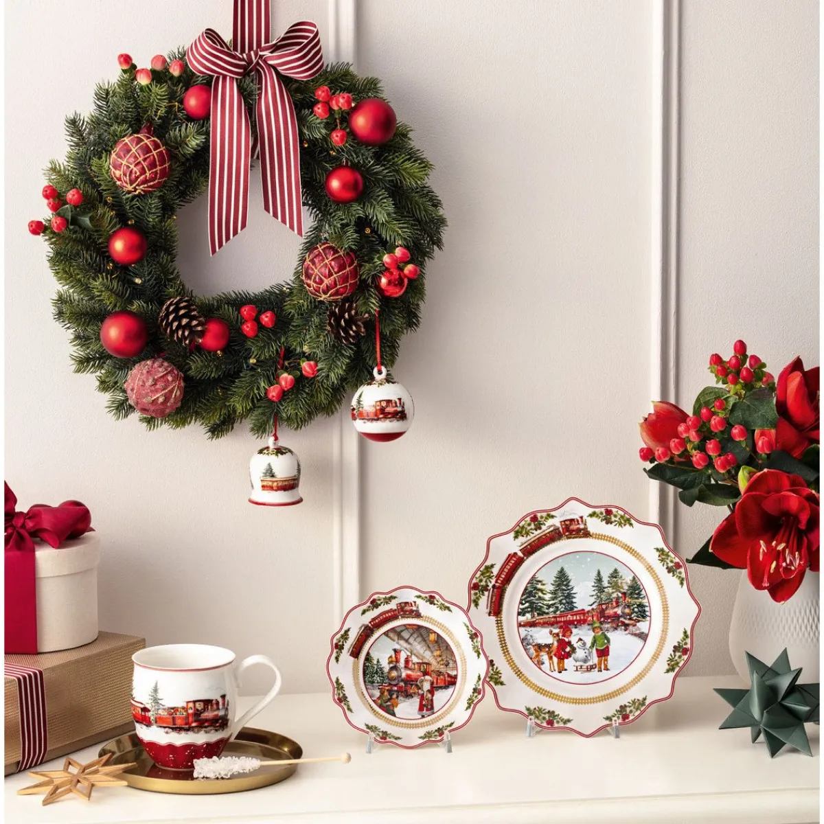 Die Jahresschale 2025 der Annual Christmas Edition von ist vom Polarexpress inspiriert und zeigt, wie der Weihnachtsmann vor seinem Zug Geschenke an überraschte Kinder verteilt. Der wellenförmige Rand, die kräftigen Weihnachtsfarben und das stimmungsvolle Dekor machen die Schale zu einem hinreißenden Sammlerstück und einer schönen Schüssel für Plätzchen oder Mandarinen. Lassen Sie sich von diesem Geschirrstück aus der limitierten Weihnachtsedition zu einer besinnlichen Reise durch die Feiertage einladen.
