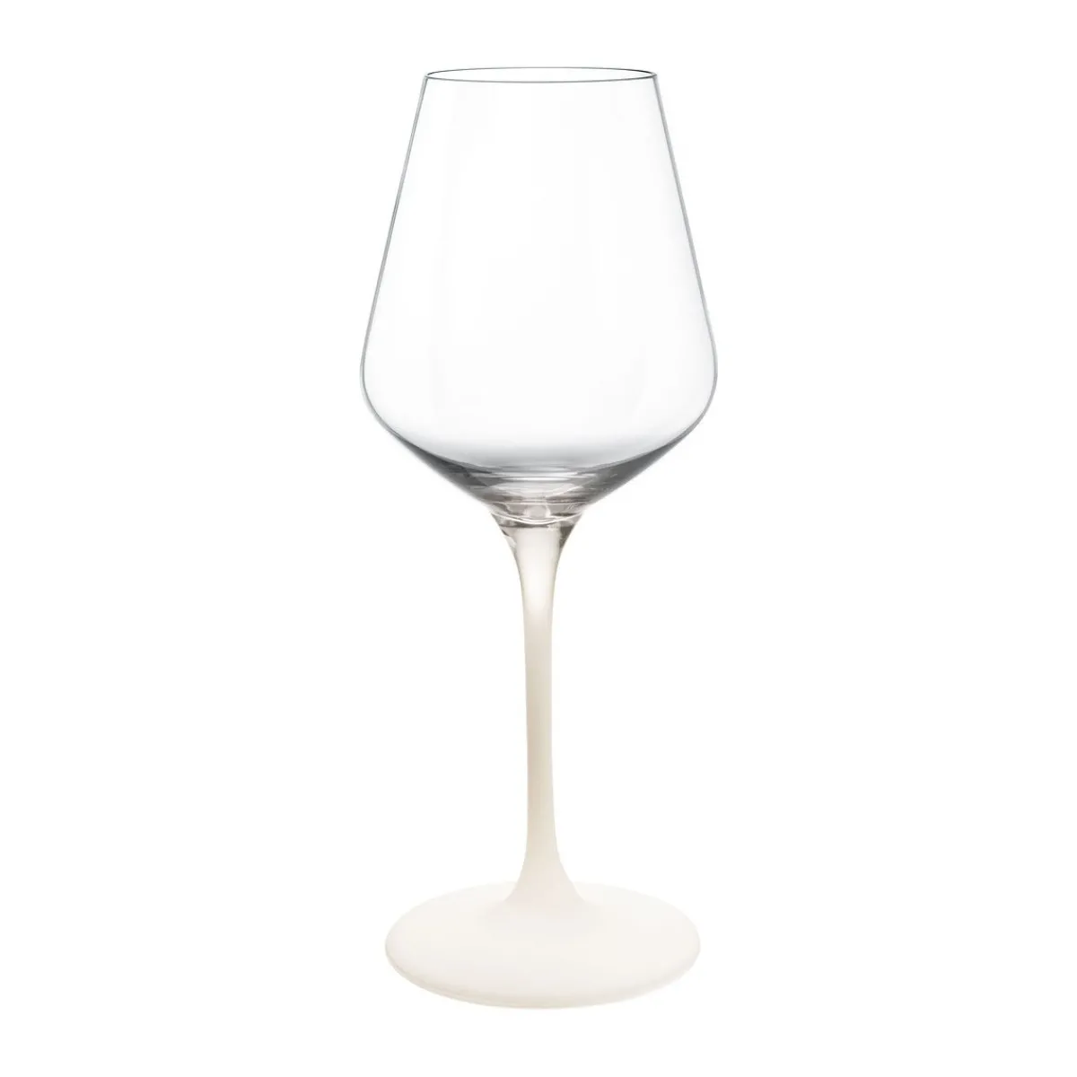 Der Weißweinkelch der Serie Manufacture Rock blanc von sorgt für eine ideale Entfaltung des Bouquets, das durch den schmaler werdenden Kamin gebündelt und zur Nase geleitet wird. Der weiße Stiel ist mit seinem mattierten Finish ein trendiger Akzent, der für Harmonie und Eleganz auf der Tafel sorgt. Kombinieren Sie dieses Weißweinglas mit den Porzellanteilen der Serie.
