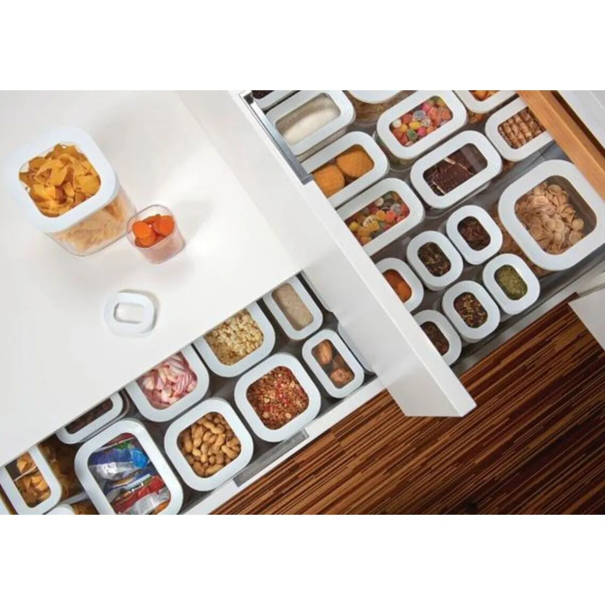 - für eine bessere Übersicht in der Küchenschublade mit Sichtfenster im Deckel