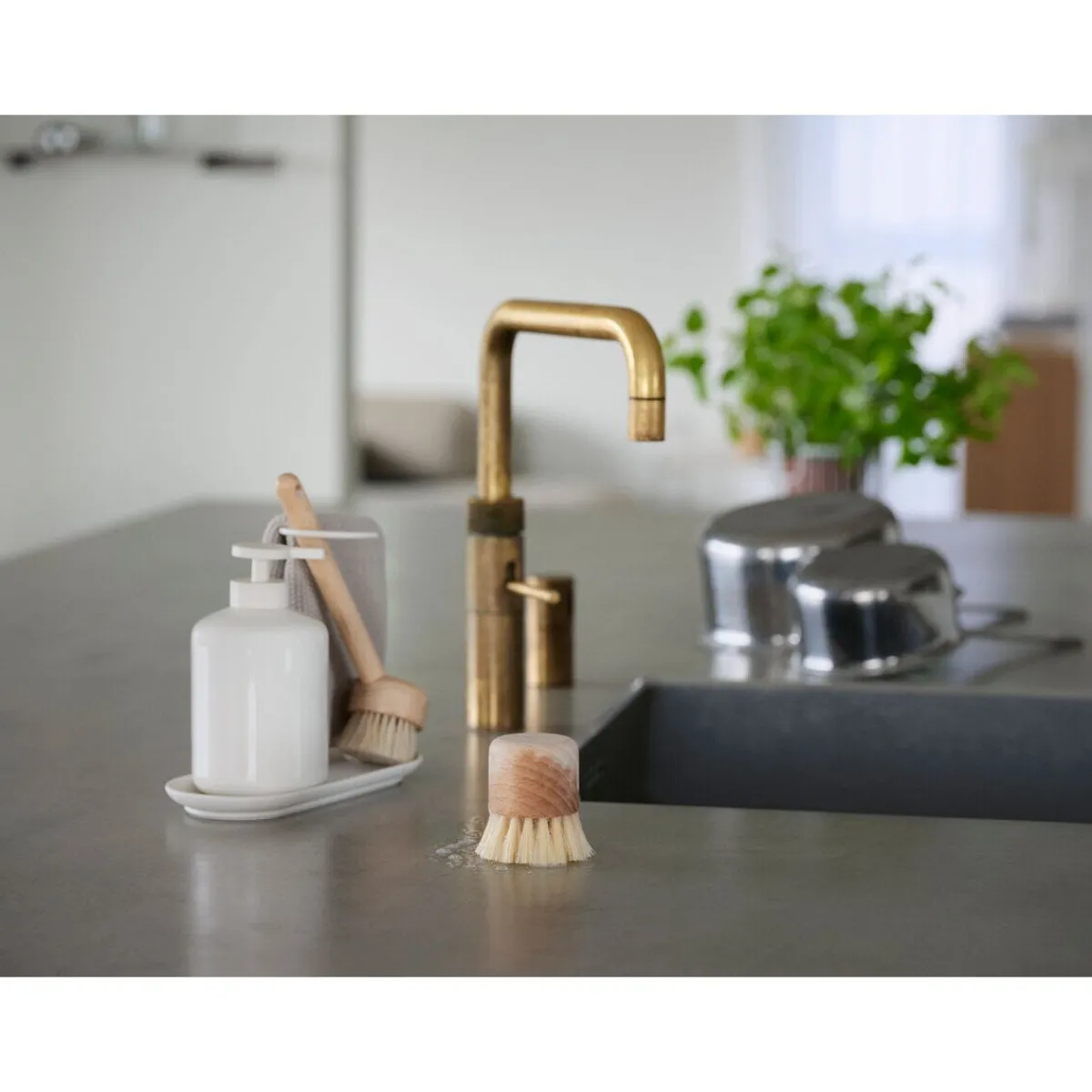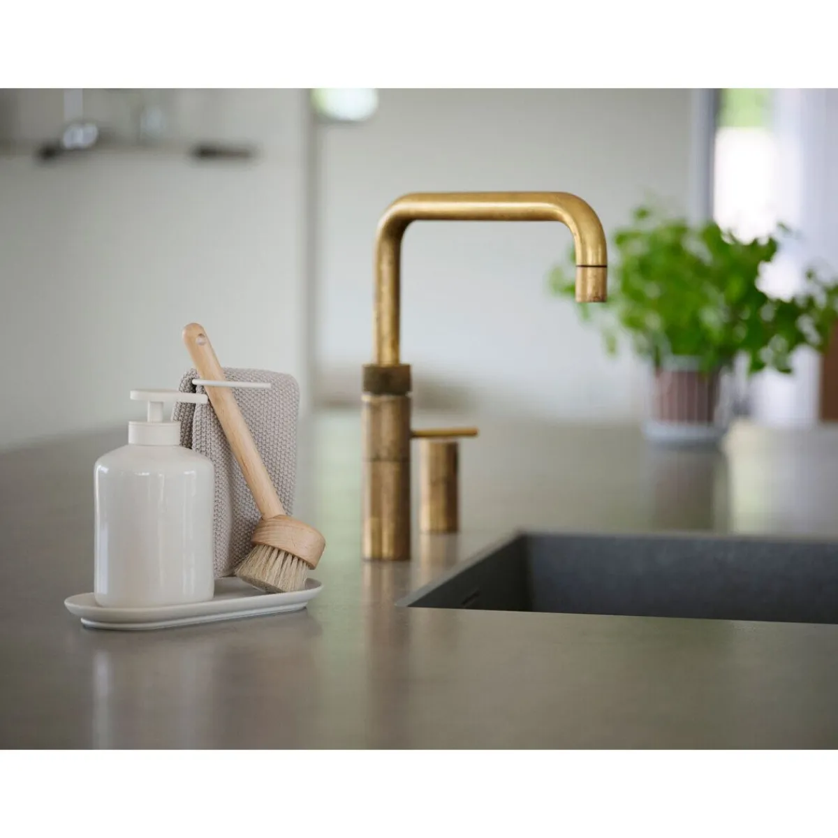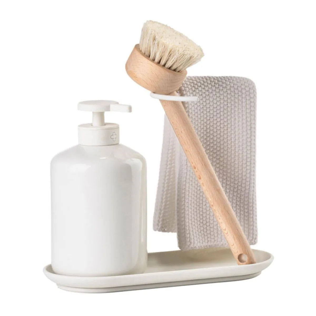 - besteht aus je 1x Spülbürste, Seifenspender, Spültuch und Abtropfschale