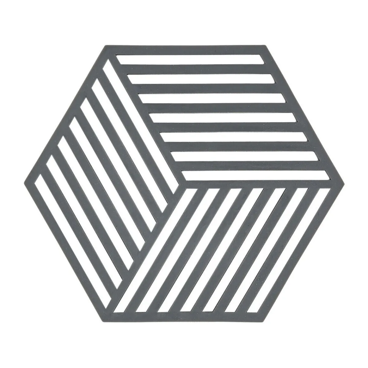 Bringen Sie mit dem Untersetzer Hexagon Cool Grey von verführerische Musterungen oder Grafiken auf den Tisch, die Ihre Tafeldecke vor den hohen Temperaturen Ihres Kochgeschirrs oder Ihrer Tassen schützen.