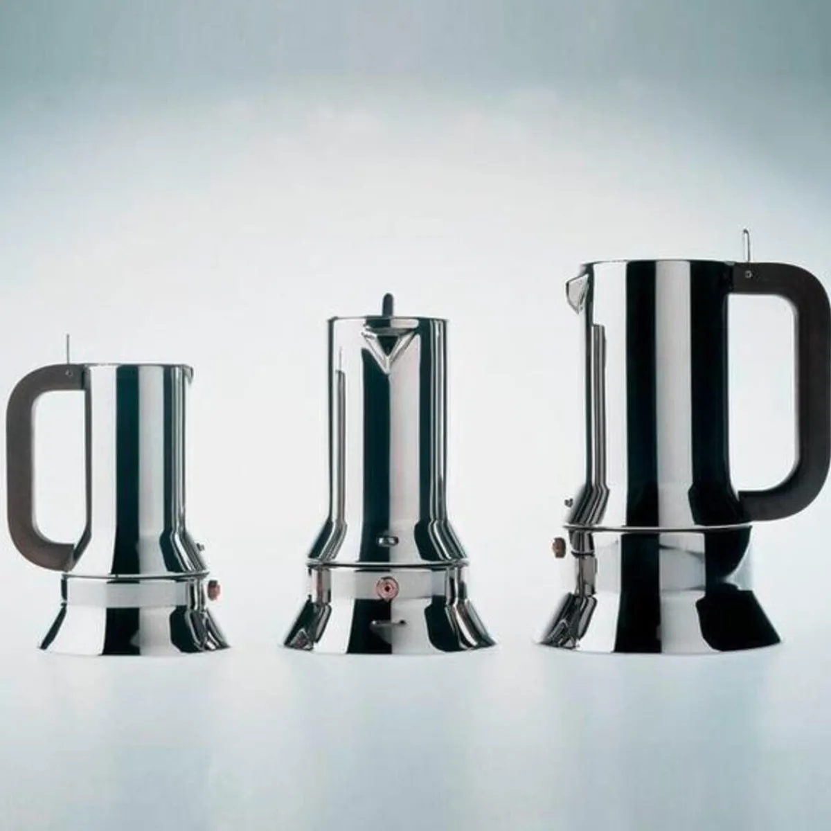 Der Espressokocher 9090 aus dem Jahr 1979 ist der erste seiner Art im einzigartigen Sortiment von gewesen. Bis heute hat der Entwurf von Richard Sapper nichts an seiner Strahlkraft verloren, der in der Umsetzung aus Edelstahl für ein vornehmes Erscheinungsbild sorgt.