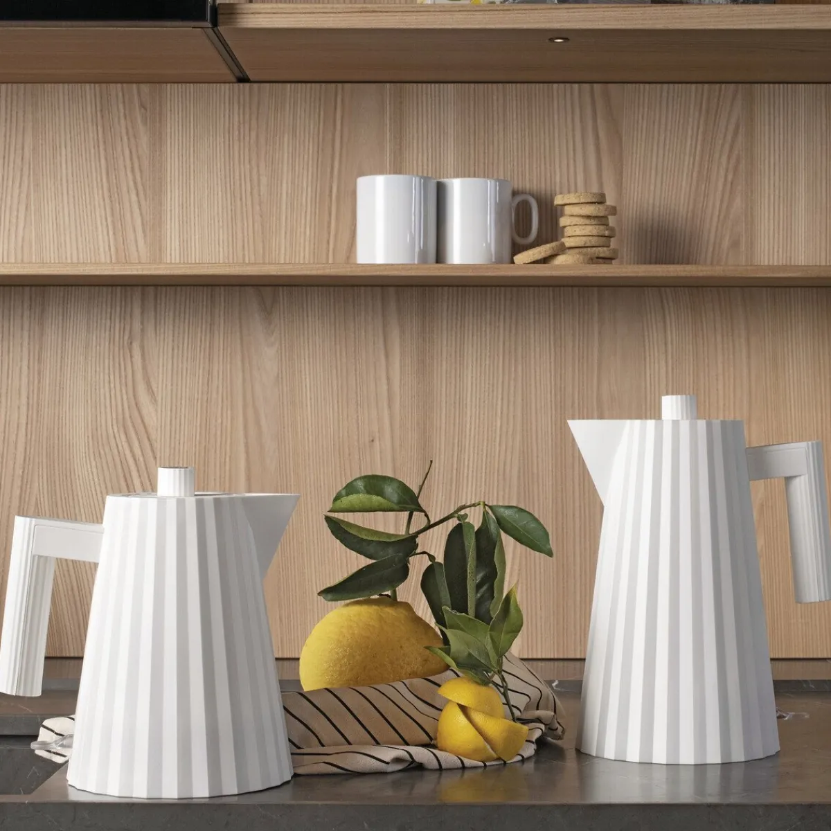 Das Erste, an was wir denken, wenn wir diesen Wasserkocher der Marke ansehen, ist ein schickes modisches Kleidungsstück mit feinem Faltenwurf. Tatsächlich ähnelt die Kollektion Plissé von Designer Michele De Lucchi einem Haute Couture Kleid. Der Entwurf für die italienische Designfirma Alessi vereint die Vorliebe für Handwerk, Skulpturen und Architektur. Dieser Wasserkocher ist eines dieser Küchenobjekte, die unbedingt einen festen und sichtbaren Platz in der Küche haben sollten.