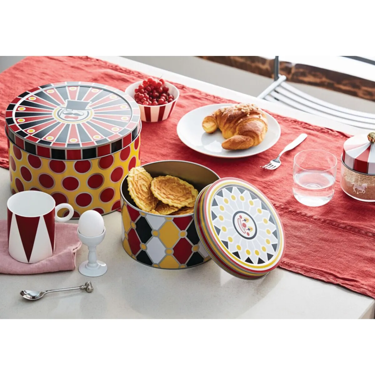 Liebhaber von bunten Zirkusaccessoires werden große Freude an der Kollektion Circus von haben. Die Allzweckboxen aus Weißblech präsentieren sich nicht nur mit typischen Zirkusornamenten, aufeinandergestapelt sehen sie auch aus wie ein perfekt gespanntes Zirkuszelt. Diese Kollektion weckt Erinnerungen an den ersten Zirkusbesuch.