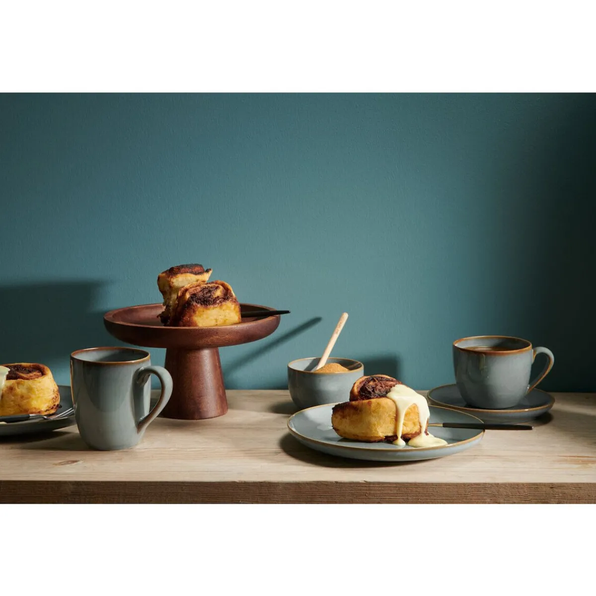 Der Henkelbecher Saisons Eucalyptus von ist geprägt von einer reaktiven Glasur, die immer wieder eine neue Optik hervorbringt. Ganz wie die Blätter eines Eukalyptusbaumes zeigt sich auch der Becher in einzigartigen Grüntönen mit variierenden Schattierungen und wird somit zu einem Unikat, das den Genuss von Kaffee oder Tee zu einem geschmackvollen Erlebnis macht.