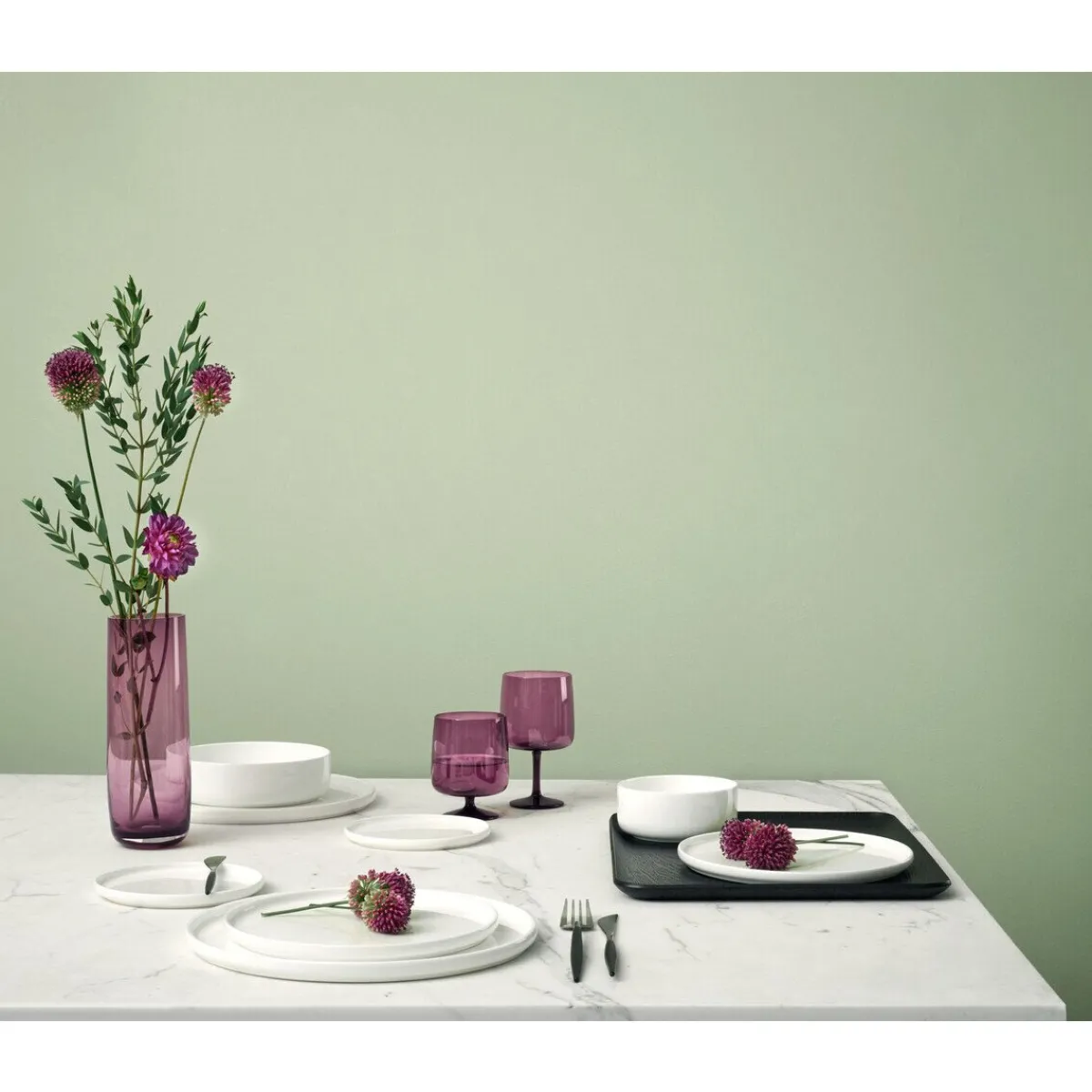 - klares Weiß als feiner Kontrast zu bunten Delikatessen