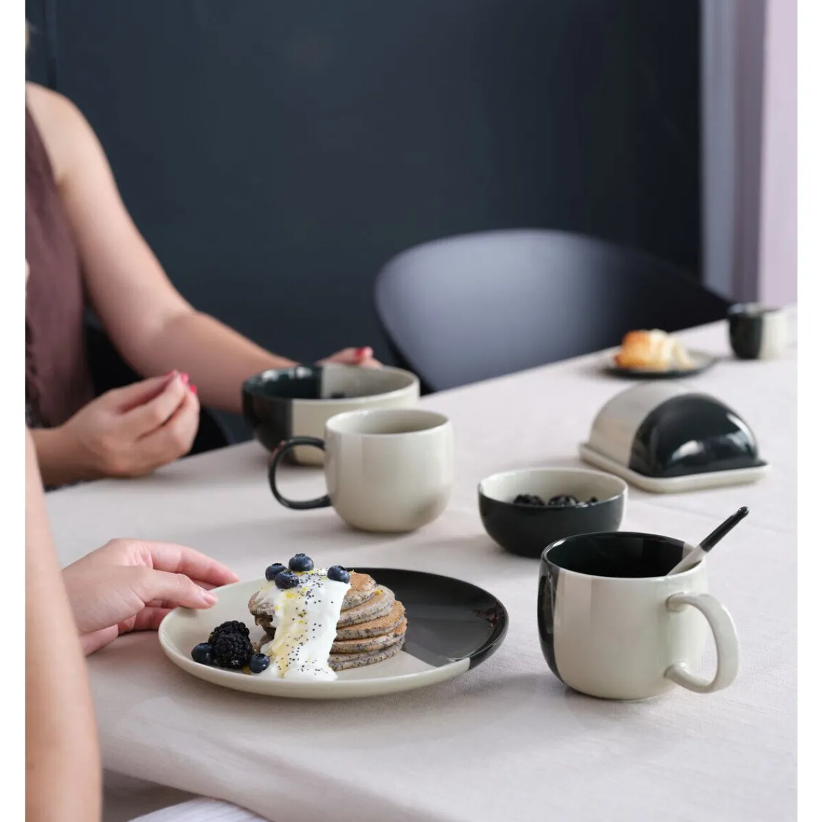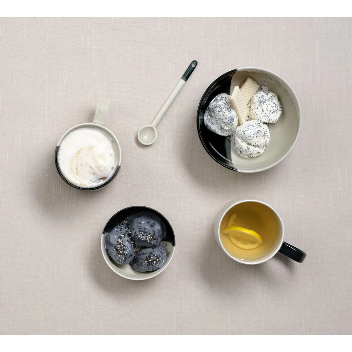 - das zweifarbige Dekor strukturiert das Erscheinungsbild auf kontraststarke Art