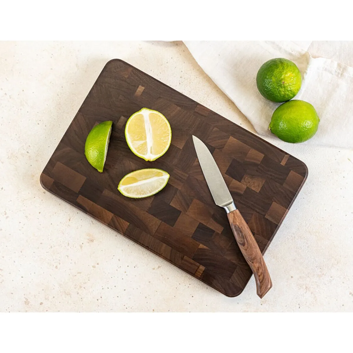 - Schneidebrett Walnuss Stirnholz mit abgerundeter Kante für einen sicheren Griff