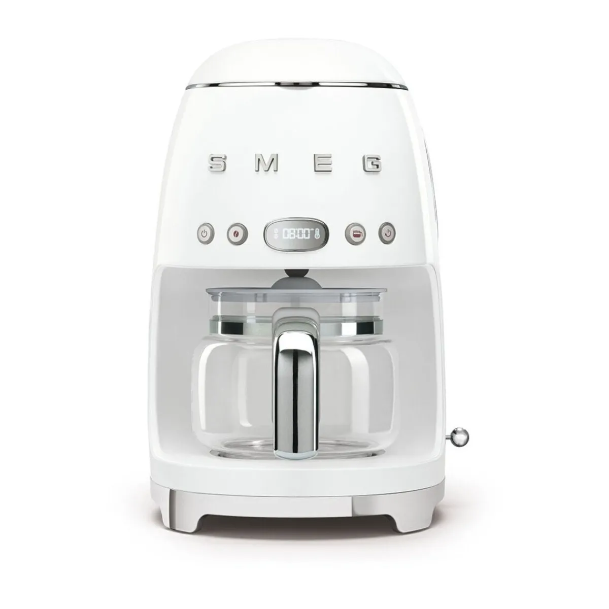 Mit der charmanten Retro-Kollektion setzt der italienische Hersteller voll auf Design im 1950er-Jahre-Stil. Runde Formen, poppige sowie softe Farbtöne machen Toaster, Küchenmaschine, Kaffeemaschinen und Co. zu stylishen Hinguckern in der Küche. So ist auch die Filter-Kaffeemaschine DCF02 aus der 50’s Style Kollektion ein sehr hübscher Anblick.Mit einem Wassertank, der bis zu 1,4 Liter fassen kann, können Sie problemlos bis zu 10 Tassen Filter-Kaffee zubereiten. Der eingebaute Timer ermöglicht es Ihnen, bereits abends alles vorzubereiten, so dass Sie morgens vom Kaffeeduft geweckt werden.