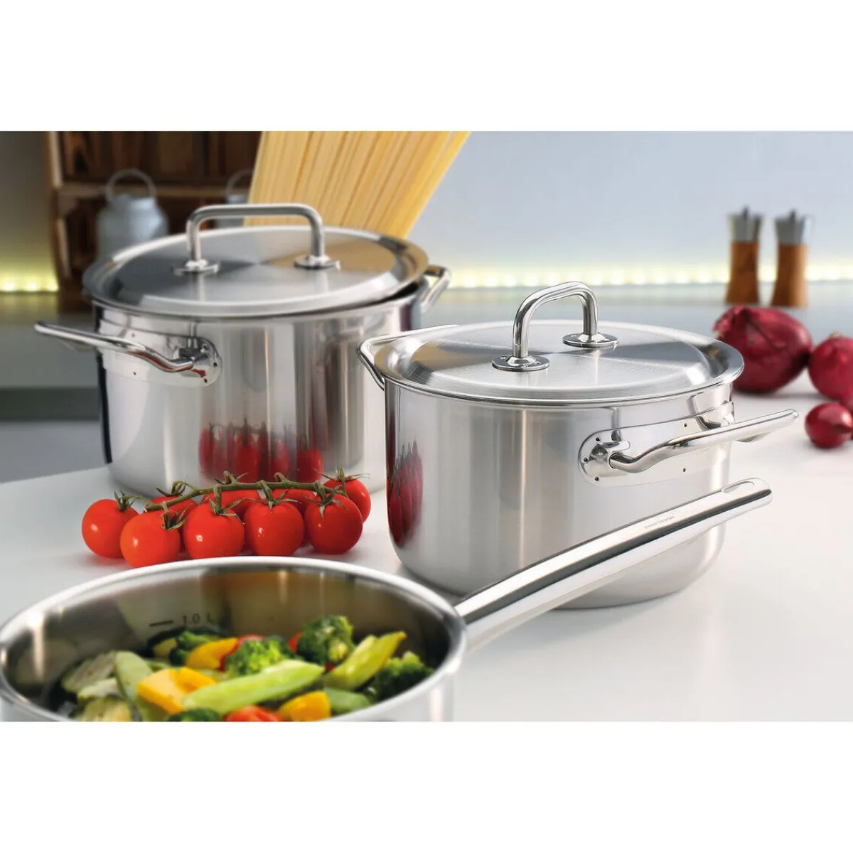 - passgenauer Deckel ermöglicht eine wasserarme Zubereitung