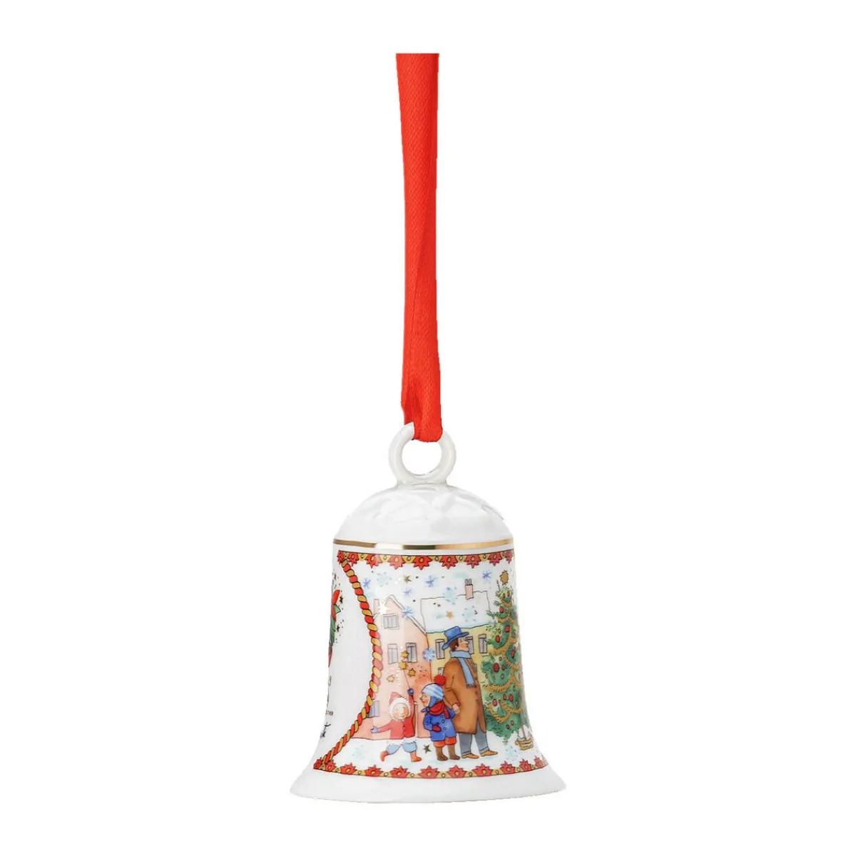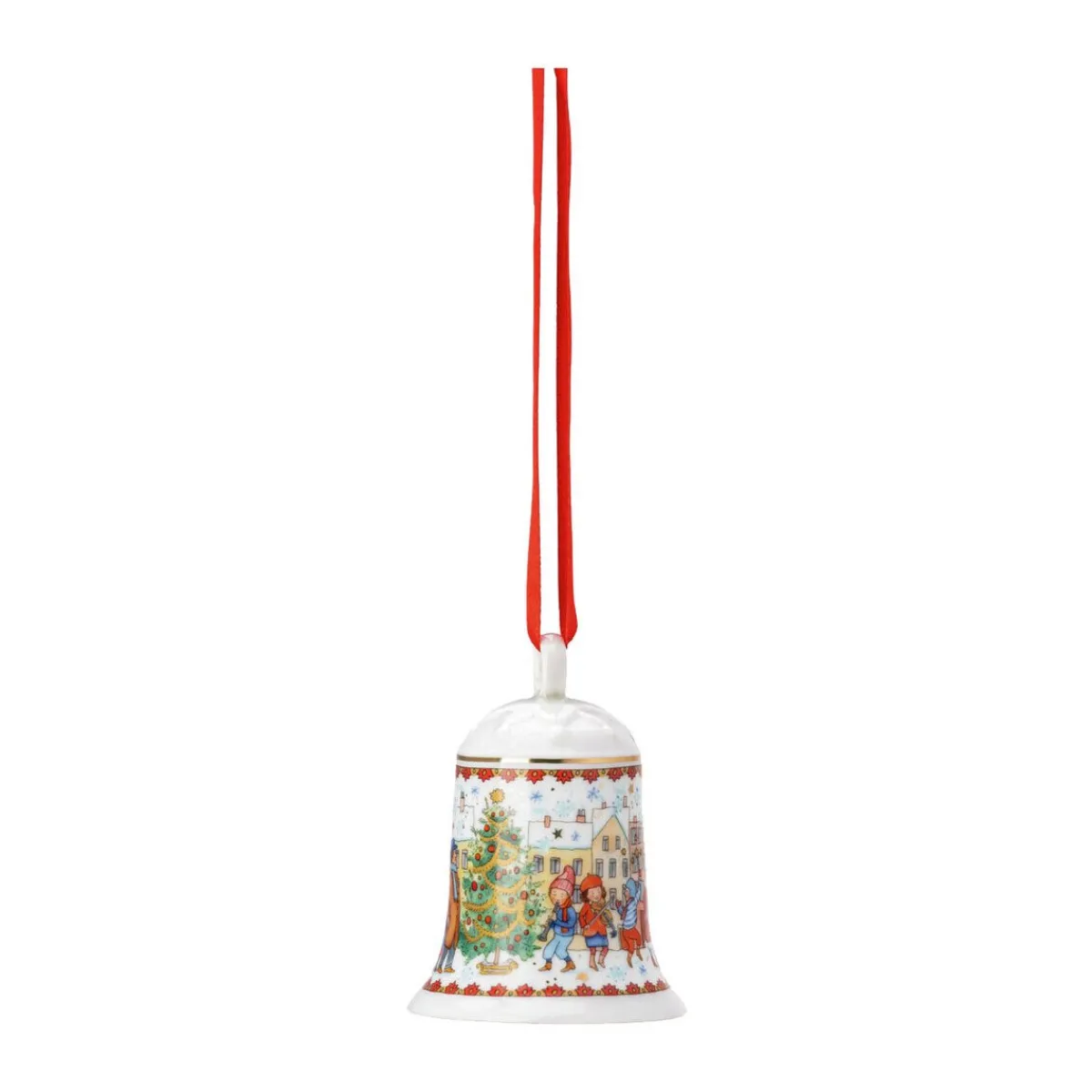 Mit der Porzellanglocke aus der Kollektion Sammeledition Weihnachten Weihnachtsglocke 2023 der Marke bereichern Sie Ihren Weihnachtsbaum oder Ihre adventliche Dekoration mit einem kindlich verspielten Ausdruck. Das hübsch in Form gebrachte Porzellan verstärkt die besinnliche Stimmung mit seinem Dekor und erzählt die Geschichte von fröhlichen Menschen, die sich auf dem Marktplatz um den Christbaum versammeln.