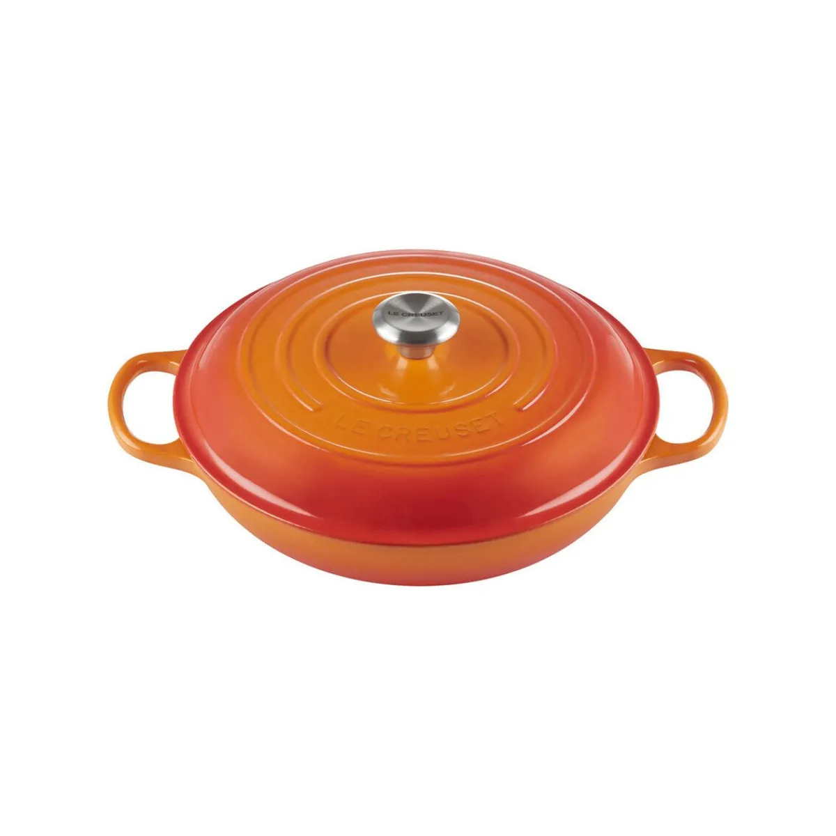 Dekorativ und funktional: Der Gourmet-Profitopf mit Deckel Signature Ofenrot von erfreut die Sinne auf mehreren Ebenen. Da ist das fröhliche Ofenrot, das zum Kochen und Zugreifen anregt und dann ist da das Gusseisen mit seinen ausgezeichneten wärmeleitenden Eigenschaften, die für gleichmäßige und aromaintensive Ergebnisse sorgen. So feiern Sie ein Fest für die Sinne – egal, ob Sie schmoren, garen, braten oder kochen.