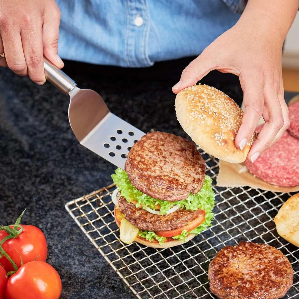 - Fett und Flüssigkeiten laufen durch die gelochte Oberfläche ab