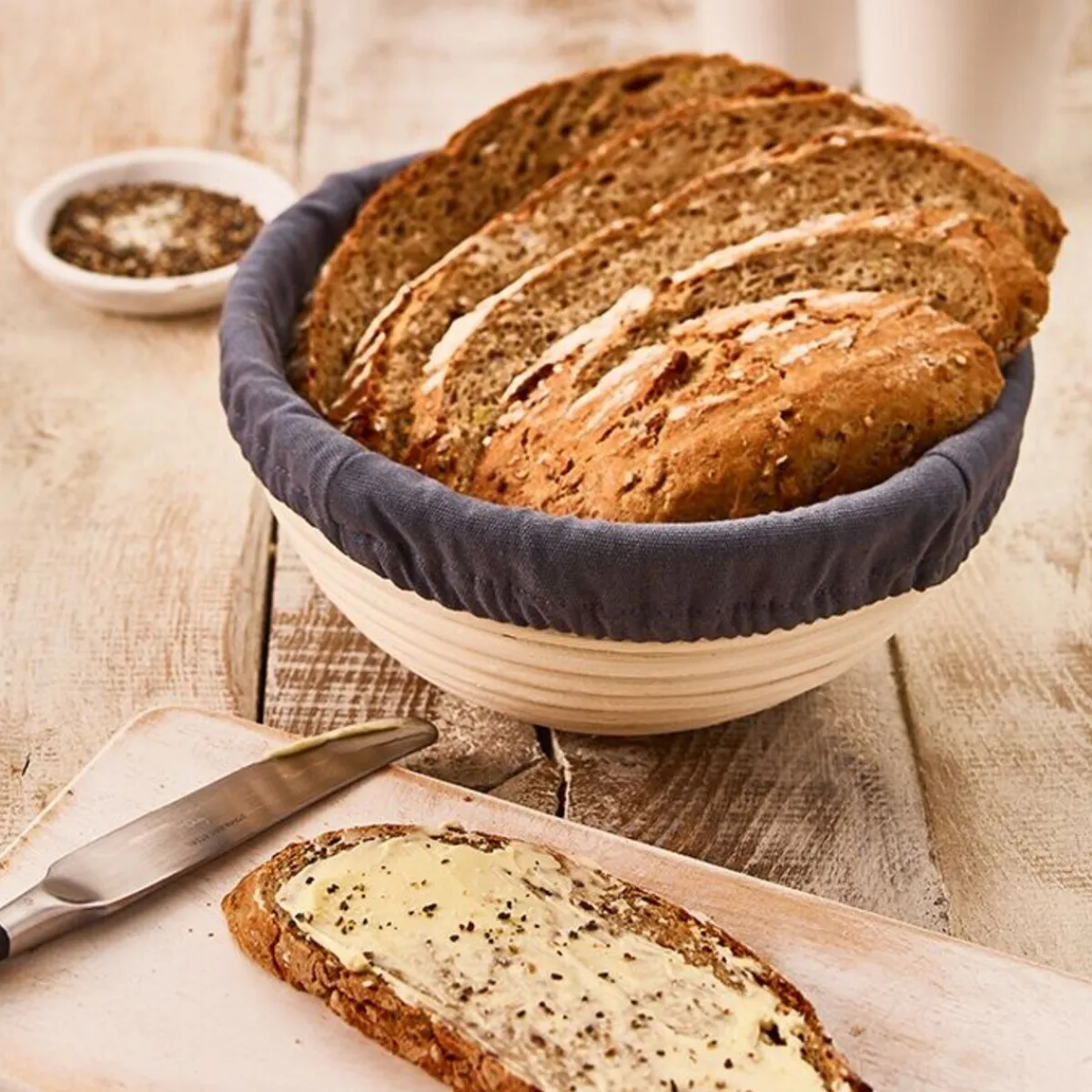 - mit dem Bezug wird das Gärkörbchen zum Brotkorb