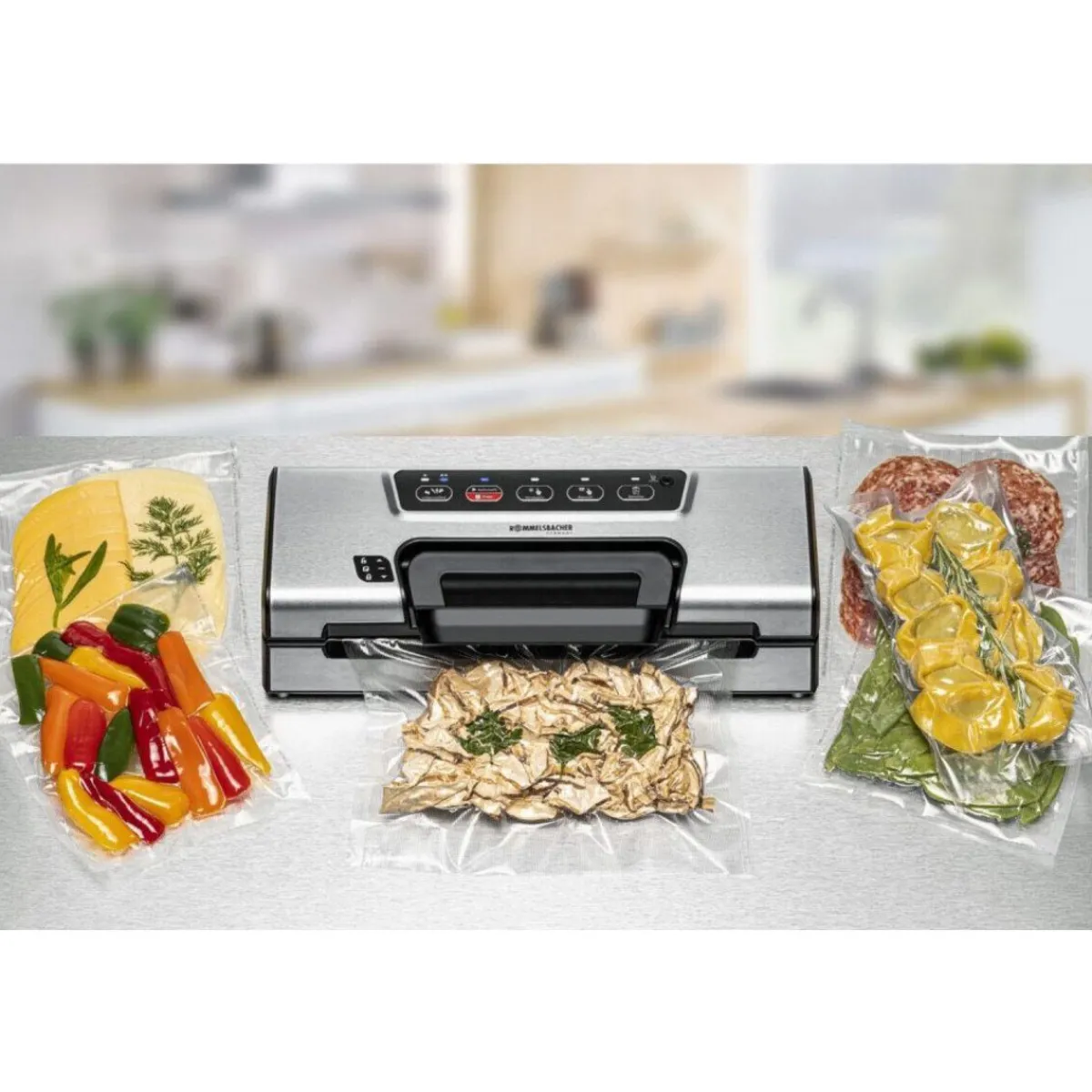 Sie möchten Ihre Lebensmittel länger haltbar machen? Mit dem Vakuumierer VAC 385 von wird das Vakuumieren und Konservieren von Lebensmitteln zum Kinderspiel. Es lässt sich mit nur einer Hand bedienen, entzieht Ihren Speisen 97 % Luft und geht sorgsam mit Ihren Köstlichkeiten und den Vakuumierbeuteln um.