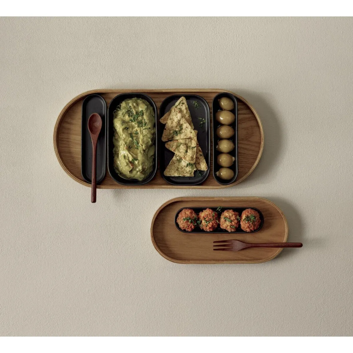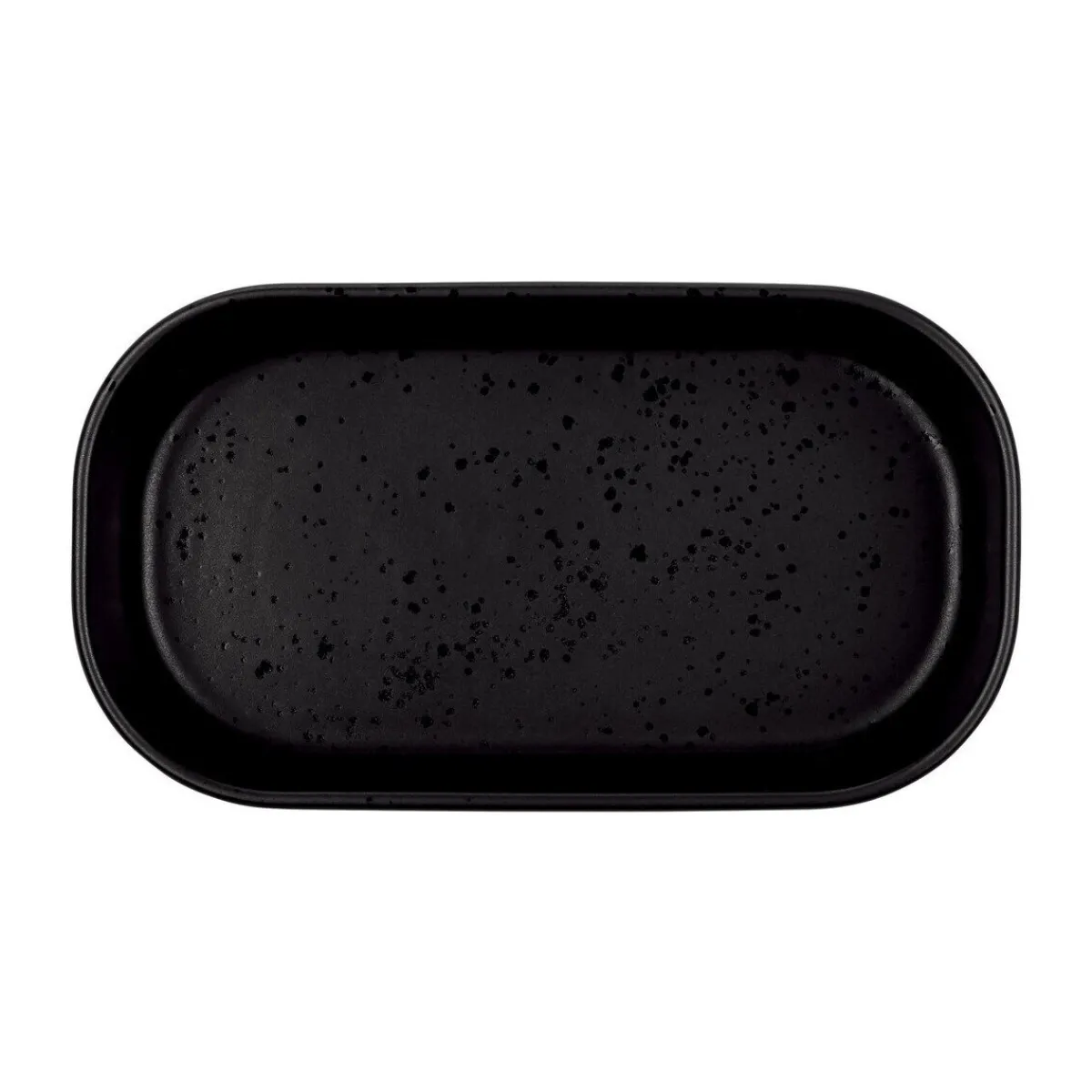Mit der Snackschale Coppa Kuro aus dem Hause servieren Sie Oliven, Tortilla-Chips, Antipasti und andere Snacks auf stilbewusste Art. Die minimalistische Formsprache wird von feinen Sprenkeln in der Glasur belebt, die jedes Stück einzigartig machen.