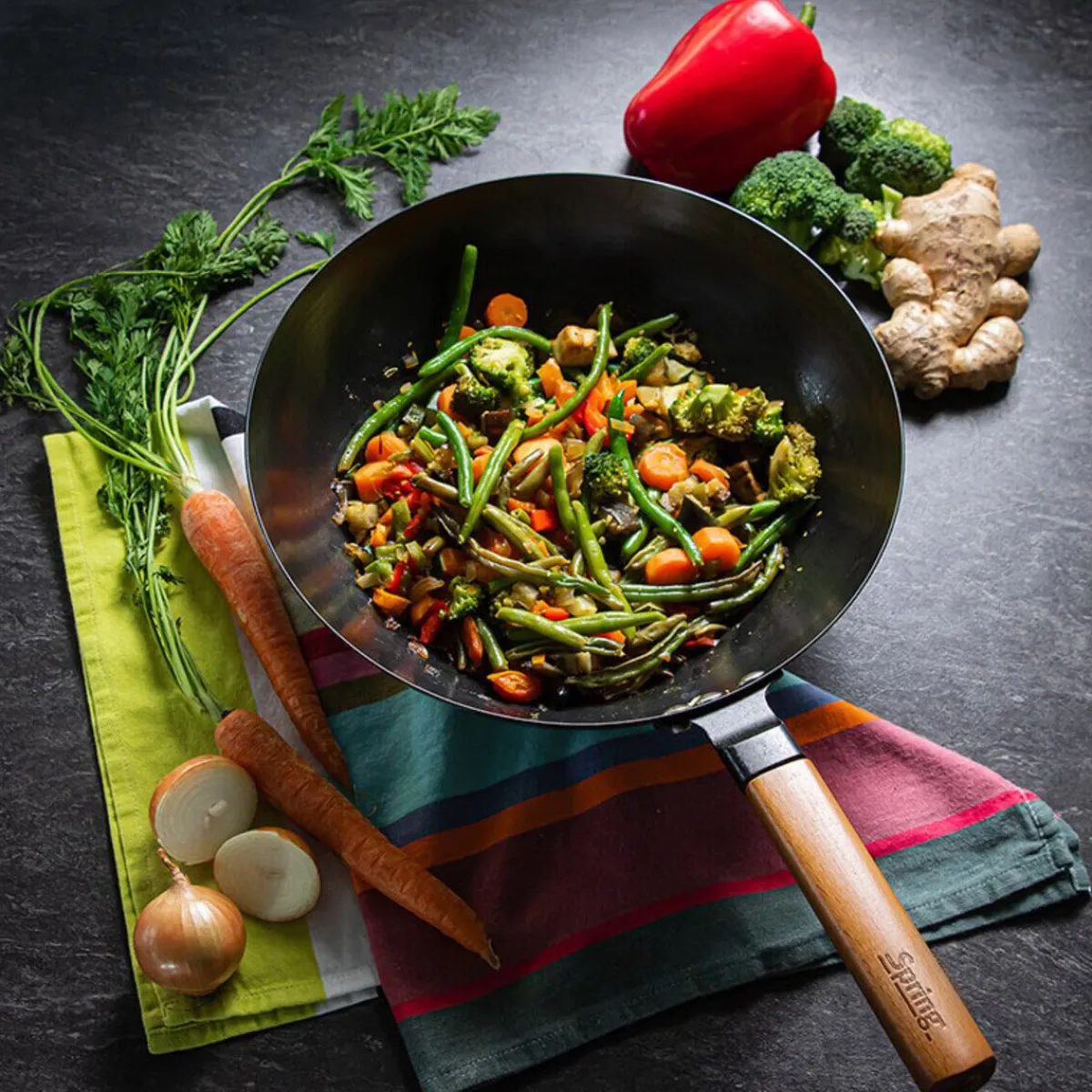- Wokpfanne Canton mit einem Griff aus Holz, der sich jederzeit angenehm greifen lässt und kühl bleibt