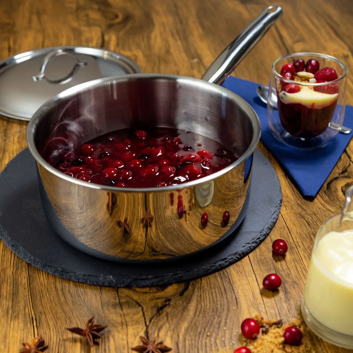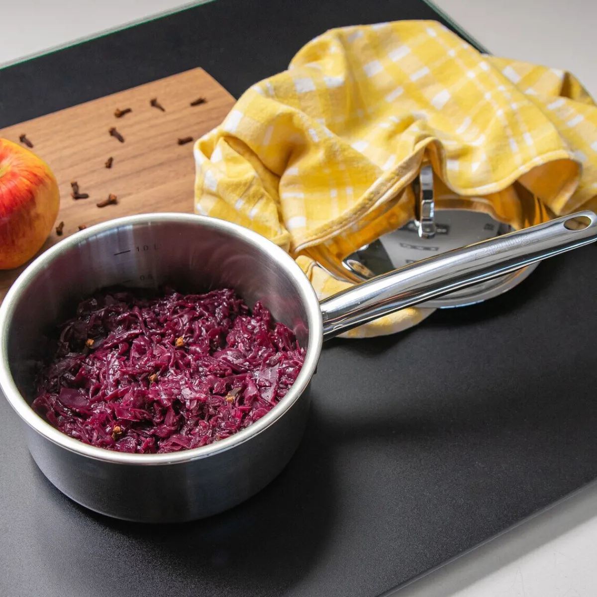 - edle Stielkasserolle mit passgenauem Deckel