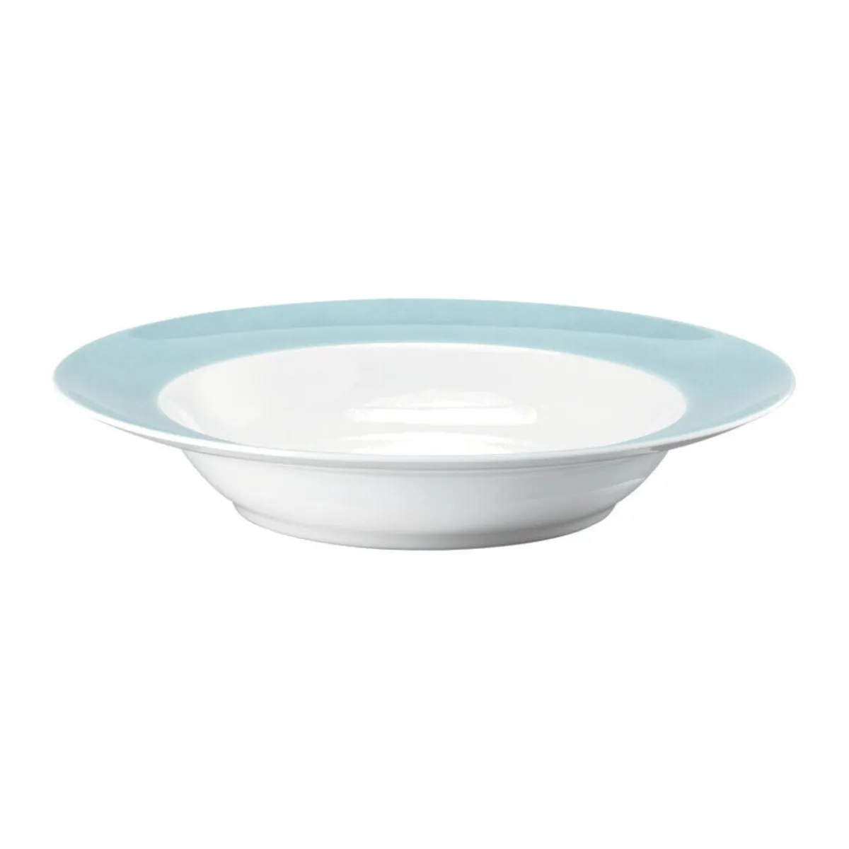 Der Suppenteller Sunny Day Soft Blue von besticht mit seiner Fahne, die Ihre Suppen und Eintöpfe mit einem zarten Blau umspielt. Das Kontrastspiel aus weißem Spiegel und blauer Umrandung wirkt in sich harmonisch und regt zum Zugreifen an.
